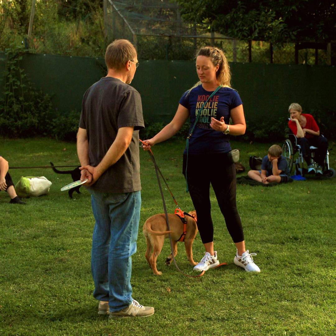 Denn neben den wertvollen Kontakten zu anderen Hunden sollt ihr gemeinsam mit euren Lieblingen während der zehn Wochen Welpenschule natürlich auch jede Menge lernen! Jede Stunde steht unter einem anderen Motto rund um das harmonische Zusammenleben mit Hund. Wir werden mit jeder Menge Spiel, Spaß und Spannung große Lernerfolge für Hund und Halter erzielen! Hierfür vermittle ich euch immer kurz die theoretischen Grundlagen, welche wir dann direkt spielerisch in die Praxis umsetzen. Zu allen Themen bekommt ihr Merkkarten mit den wichtigsten Inhalten und Übungsanleitungen für zu Hause. Wir werden uns mit allen alltagsrelevanten Themen beschäftigen, wobei natürlich die Leinenführigkeit, richtige Hundebegegnungen, der sichere Rückruf und die Impulskontrolle auf keinen Fall fehlen dürfen. Ihr werdet außerdem viel über die richtige Kommunikation und die Körpersprache eures Hundes lernen. In den Freispielsequenzen werde ich euch die hündische Kommunikation „übersetzen“, sodass du deinen Hund auch außerhalb der Welpenstunde besser lesen und einschätzen kannst. Ihr selber dürft euch selbstverständlich jederzeit mit Wünschen und Themenvorschlägen einbringen! Durch die feste Gruppenkonstellation kann ich mich auf die jeweiligen Bedürfnisse aller Teilnehmer individuell einstellen. Für ganz spezielle persönliche Anliegen stehe ich außerhalb des Gruppentrainings auch für Einzelstunden bei euch zu Hause zur Verfügung.