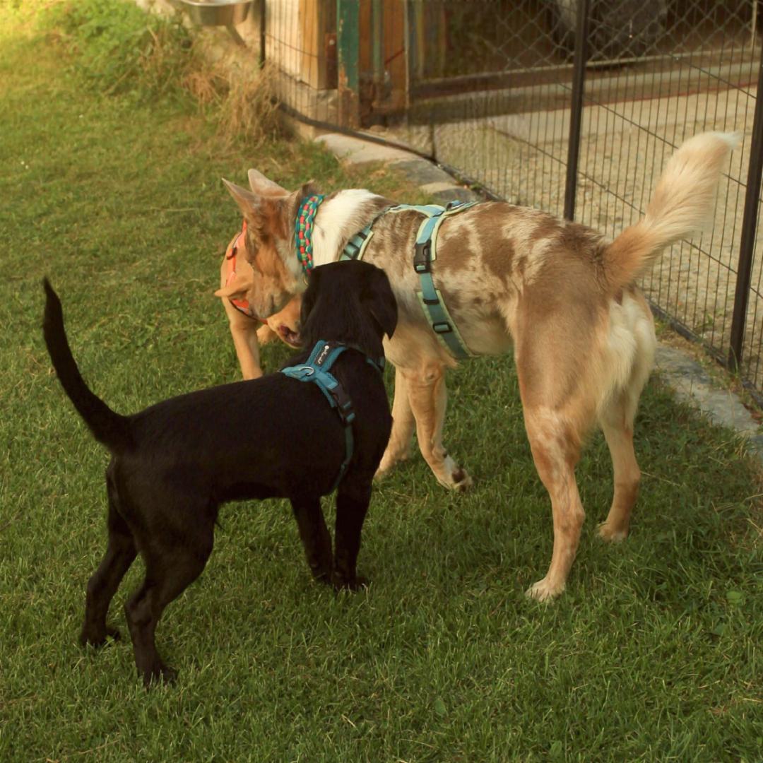 "Hilfssheriff" Mooji unterstützt mich während der Welpenkurse, geht mit gutem Beispiel voran und leitet die jungen Wilden im freien Sozialkontakt souverän an.