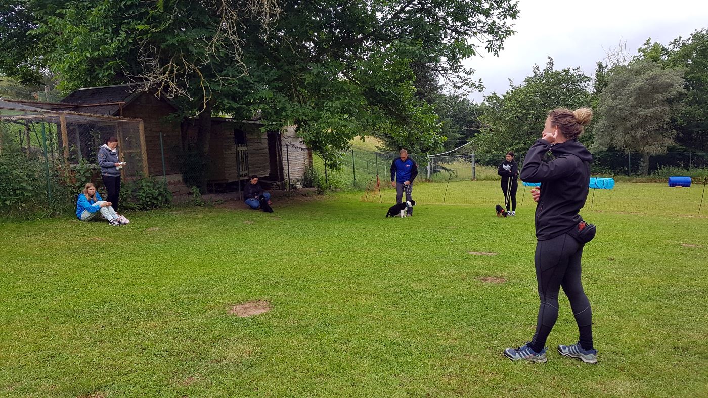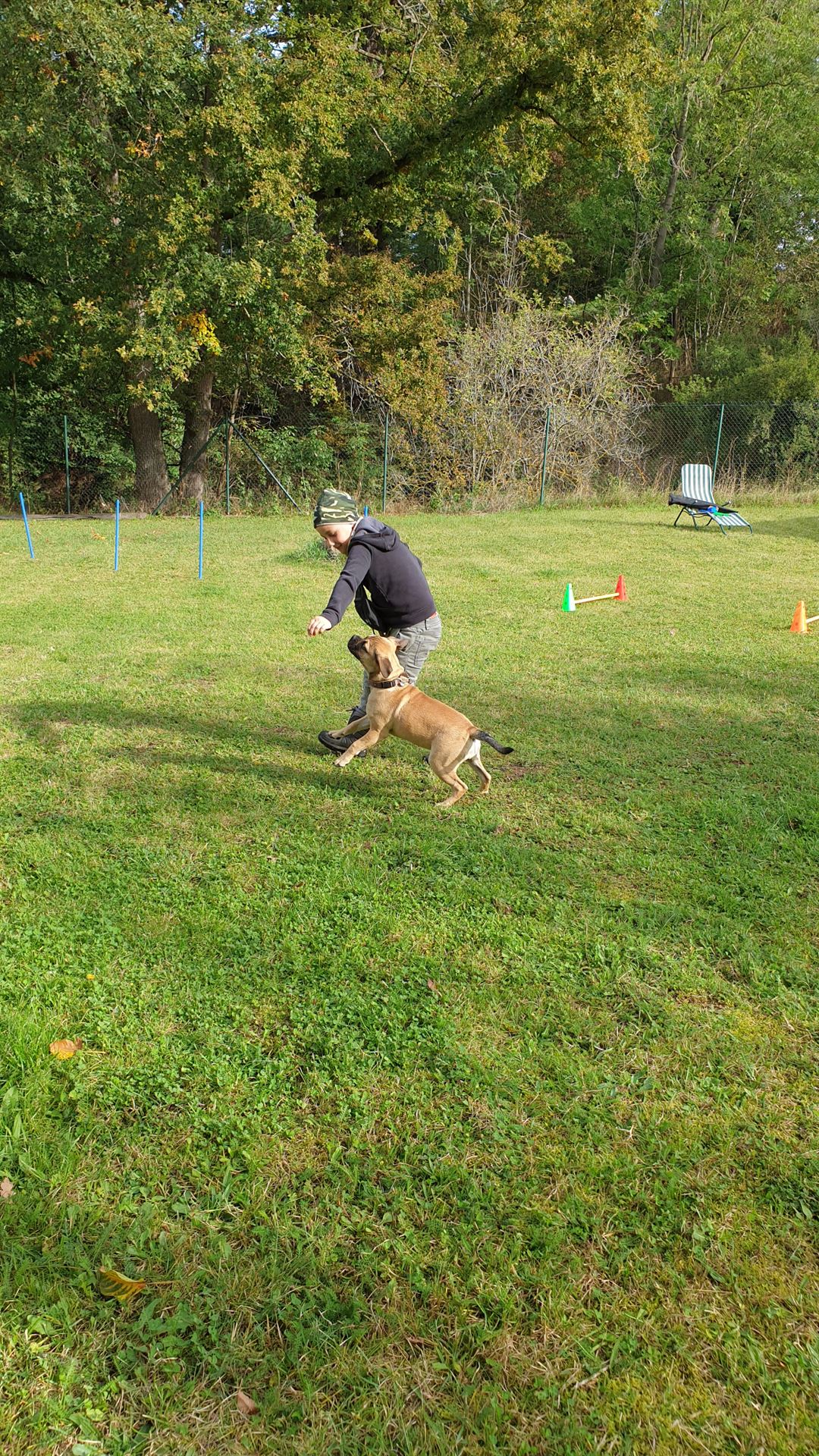 "Hilfssheriff" Mooji unterstützt mich während der Welpenkurse, geht mit gutem Beispiel voran und leitet die jungen Wilden im freien Sozialkontakt souverän an.